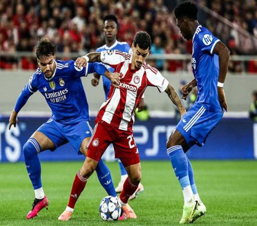 下半场易边再战。第52分钟,皇马丢球了。塔雷米抢点头球顶进。5分钟后,维尼修斯突入禁区后的射门被挡出。第59分钟,维尼修斯在边路突破,随即送出倒三角回传球,姆巴佩直接推射破门,完成大四喜!第81分钟,奥林匹亚科斯再次缩小差距。卡埃比头球顶进!之后卡埃比的射门踢偏,错失了绝平的机会。最终,皇马4-3险胜奥林匹亚科斯。姆巴佩5场欧冠打进9球,刷新个人单赛季欧冠进球纪录。