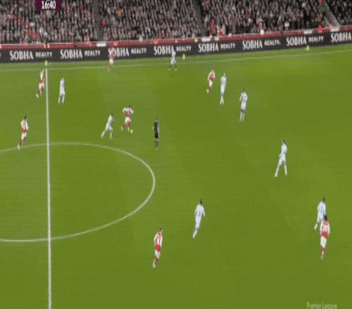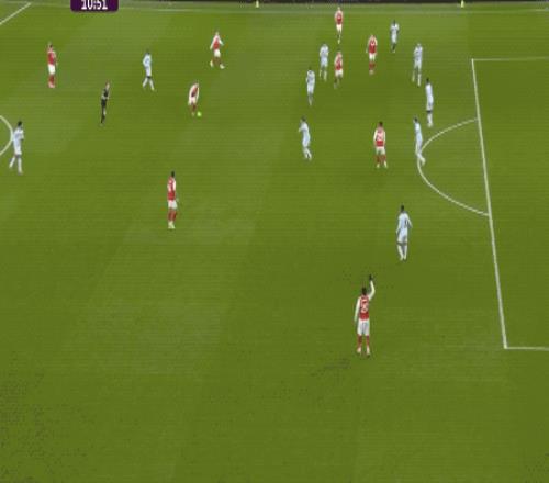 第37分钟,阿森纳前场抢断,梅里诺起到轴心作用,赖斯的传中正好越过两名后卫,马杜埃凯的射门被后卫挡出底线。