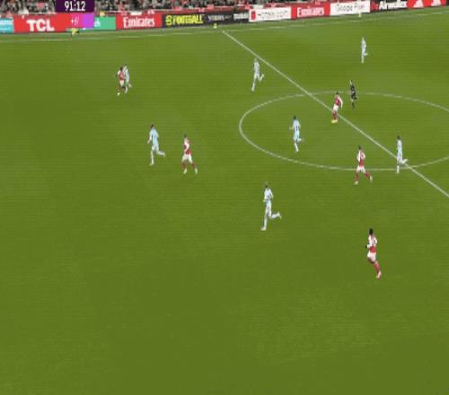 伤停补时阶段,梅里诺送出手术刀一般的传球,萨卡晃过两人,劲射破门。