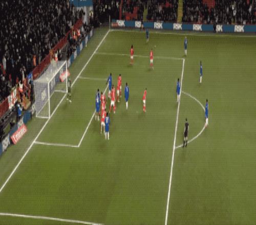 第34分钟,切尔西在前场连续一脚传球,阿昌庞的远射力量十足,门将奋力将球扑出。
