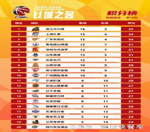 CBA常规赛第19轮全面战罢,广厦、上海、山东以及辽宁等队先后出战。卫冕冠军广厦这一战败走麦城,他们在客场输给了山东队,遭遇到本赛季第三场败仗,球队战绩变成16胜3负,继续排在积分榜第一名。不过,他们与身后的上海队和广东队,差距已经缩小到只有1个胜负场了。青岛队这一战则爆冷输给广州队,排名不降反升,重返积分榜第四名。而四冠王辽宁队,他们在输给新疆队以后,排在积分榜第13名。