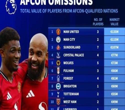 德转列英超各队非洲杯晋级国家球员总身价:曼联第1,曼城第2